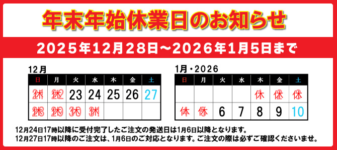 | ※ | 日曜日・月曜日の発送は行っておりません。 |